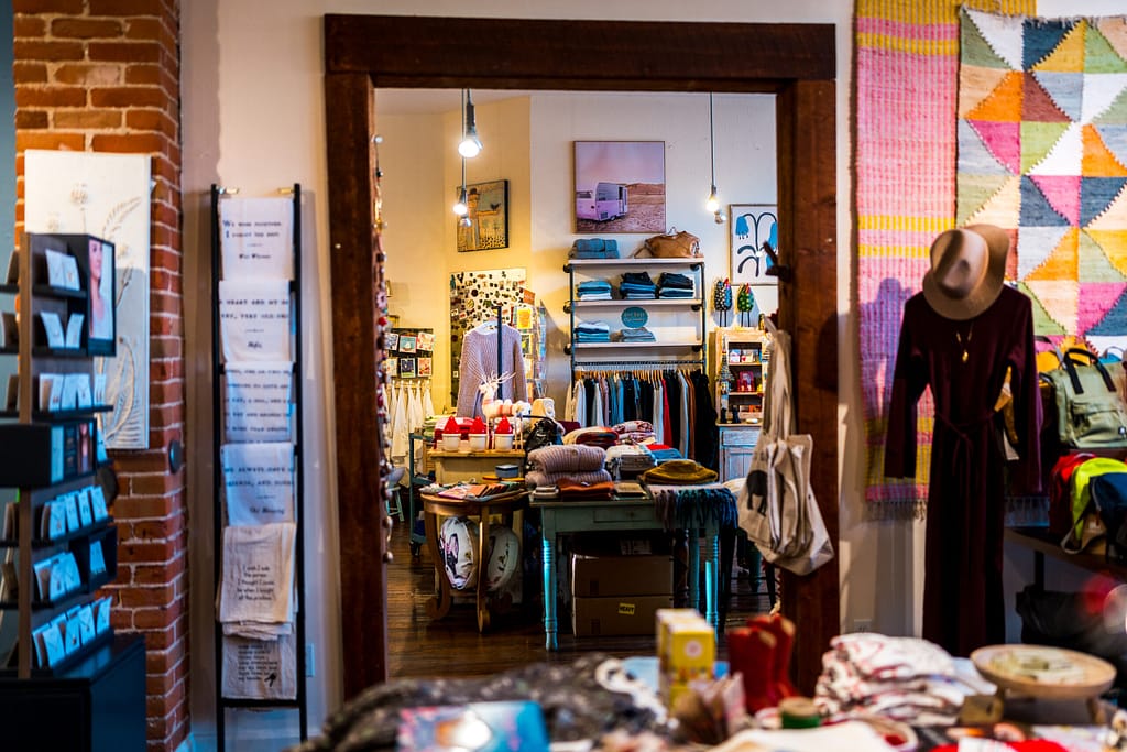 Ropa de calidad con un aire de Colorado, accesorios únicos, regalos caprichosos, libros, tarjetas y obras de arte.