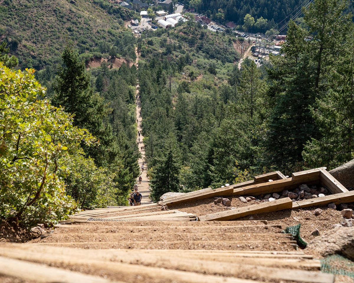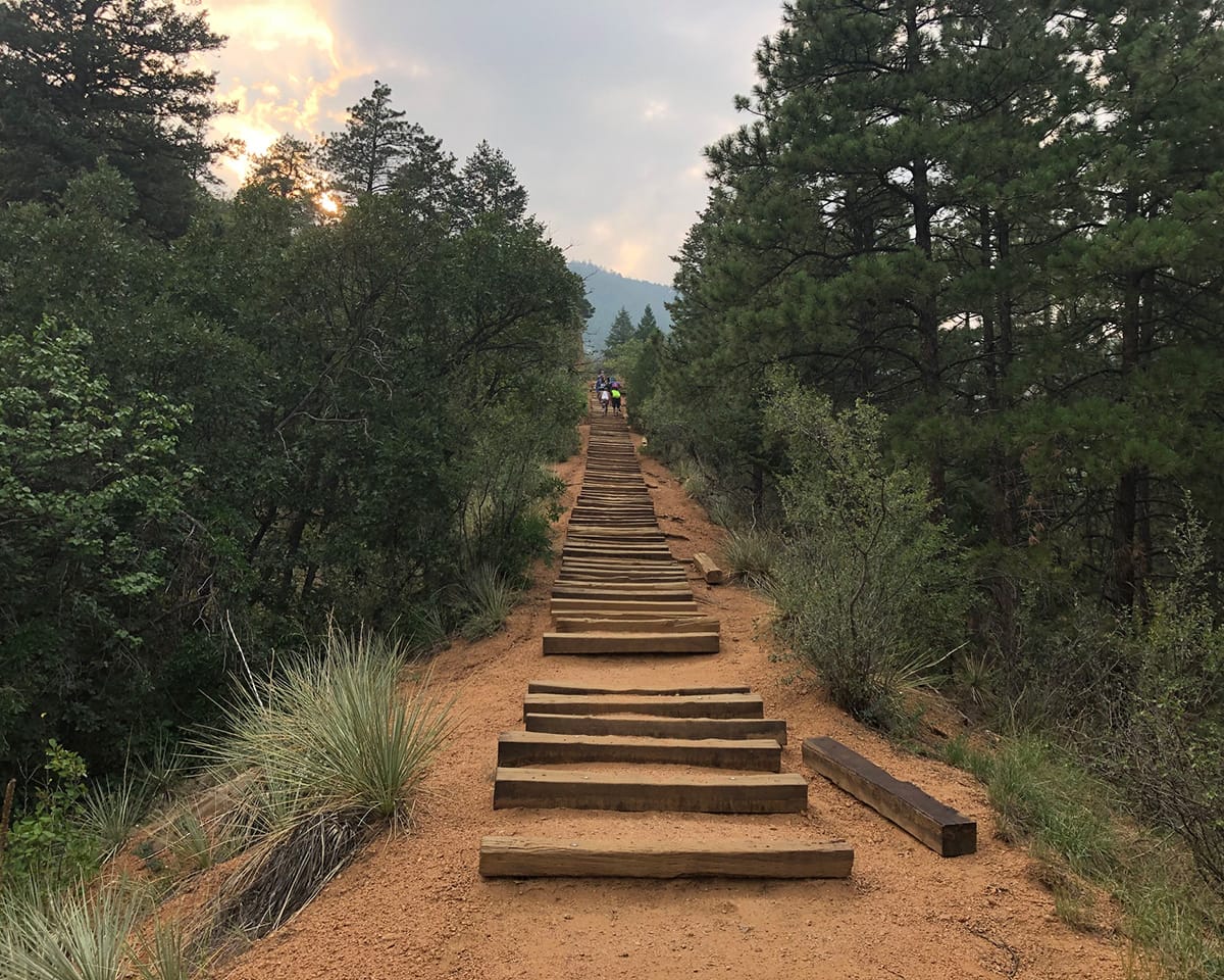 The Manitou Incline has earned its reputation as the holy grail of cardio for locals and visiting athletes alike. What was once a railroad track now consists of approximately 2,744 steps made entirely of railroad ties. Yes, you read that right — 2,744 steps.